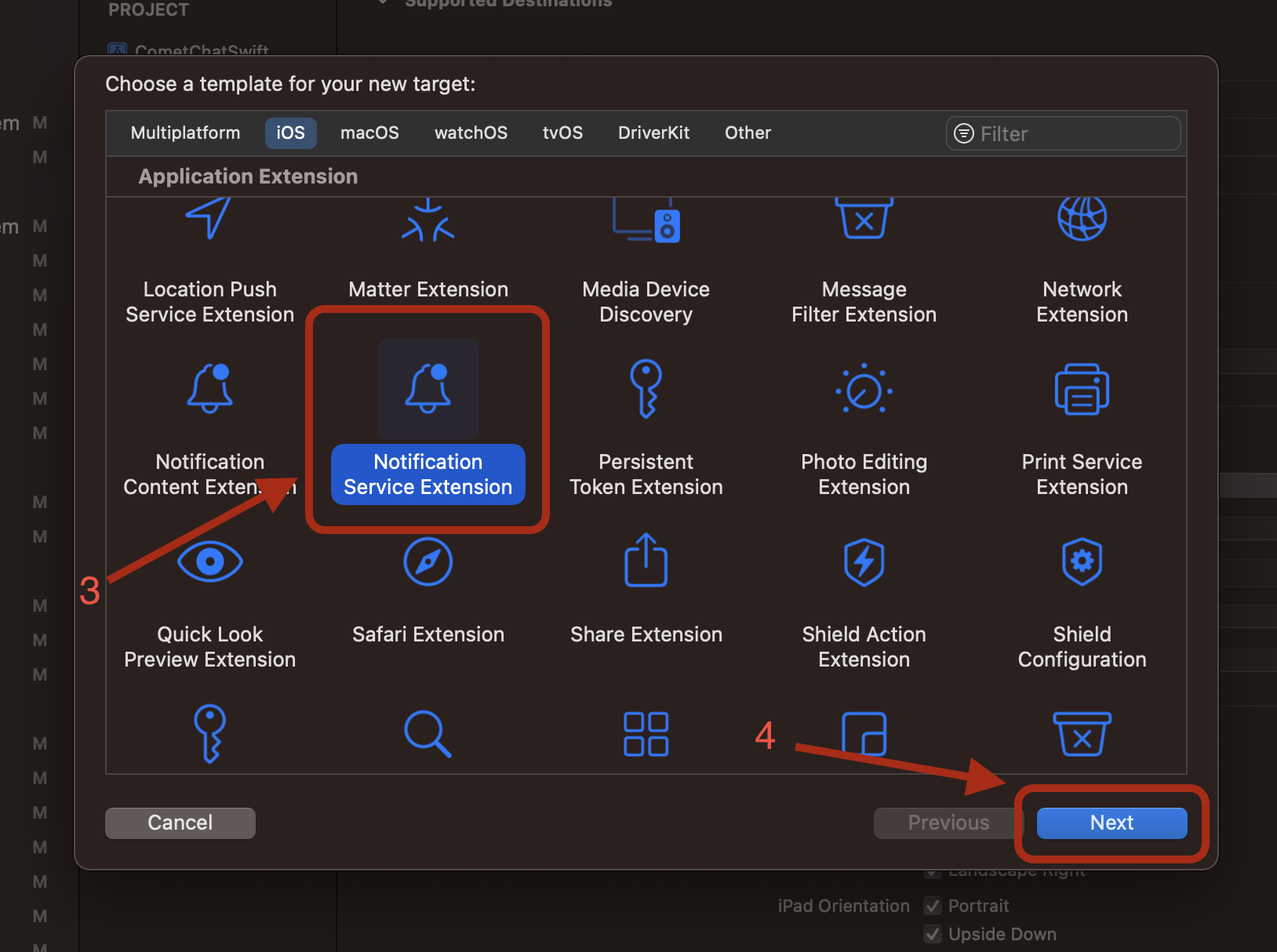 - Then Scroll down, select Notification Service Extension and click on the next.