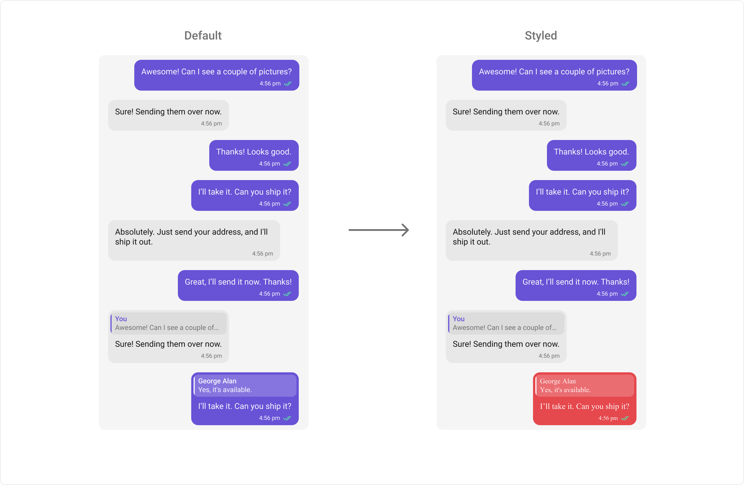 Message bubbles are the core visual element in chat applications, encapsulating different types of messages like text, images, or attachments. Customizing message bubbles allows developers to create a consistent and engaging user experience that aligns with their app’s theme and design language. This guide provides an overview of how to style outgoing and incoming message bubbles and customize the appearance for specific message types.