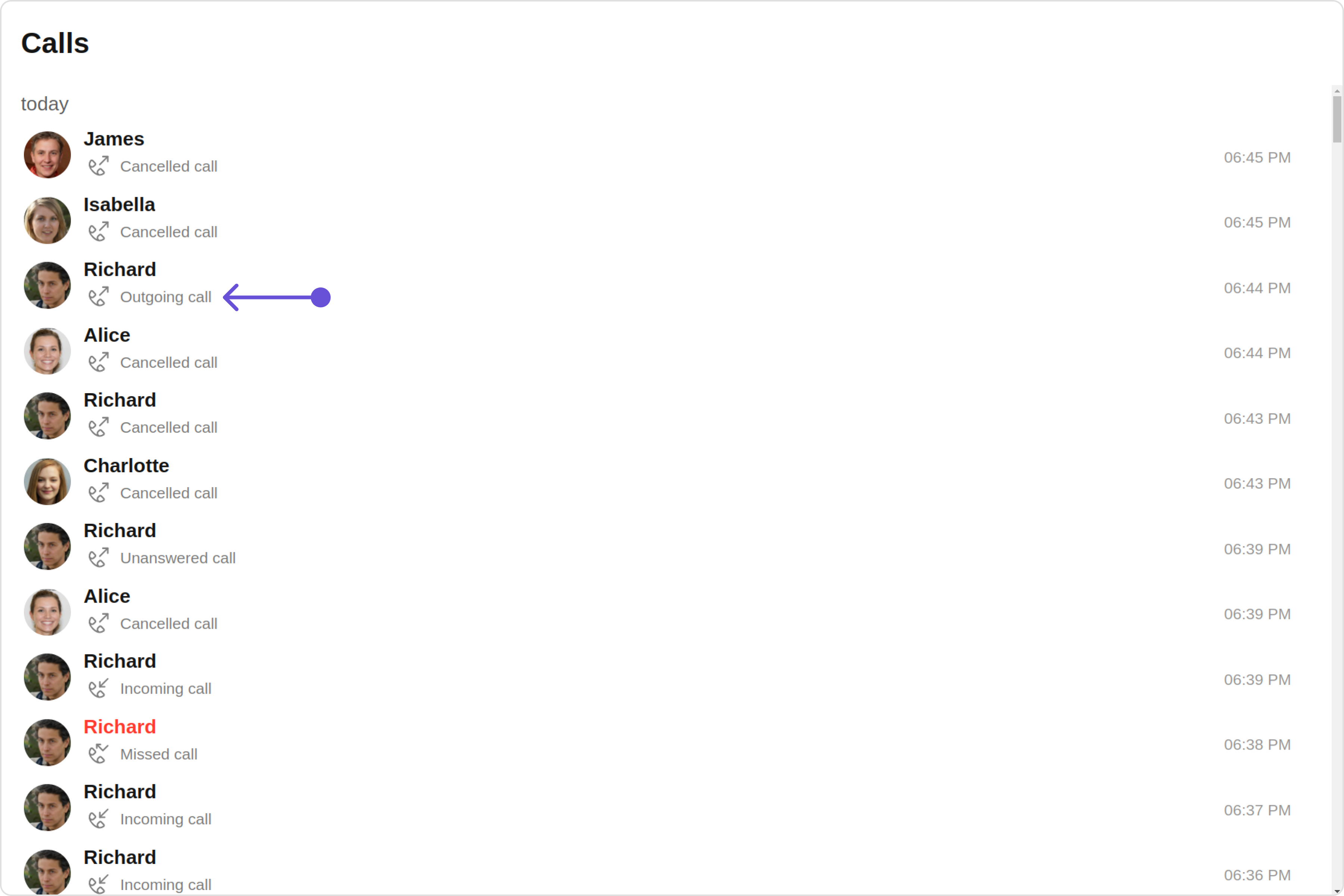 | missedCallIconTint | Used to set missed call icon tint | missedCallIconTint?: string; |