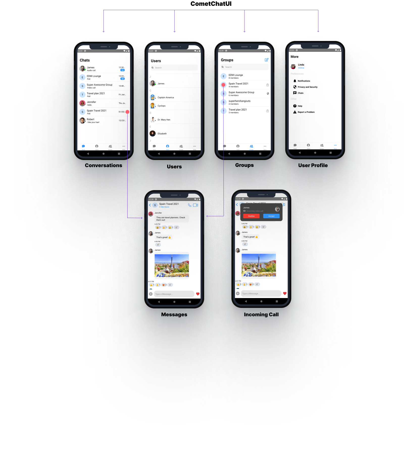 CometChatUI is an option to launch a fully functional chat application using the UI Kit. In CometChatUI all the UI Components are interlinked and work together to launch a fully functional chat on your application.